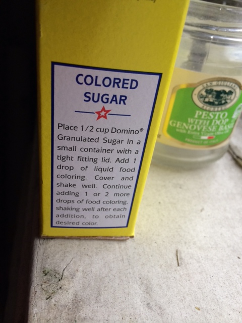 Found Poem with Colored Sugar and a Single Red Star 06 Thursday Nov 2014 Posted by Safia Jama in photo-paintings ≈ Leave a comment Place 1/2 cup Domino (r) Granulated Sugar in a small container with a tight fitting lid. Add 1 drop of liquid food coloring. Cover and shake well. Continue adding 1 or 2 more drops of food coloring, shaking well after each addition, to obtain desired color.